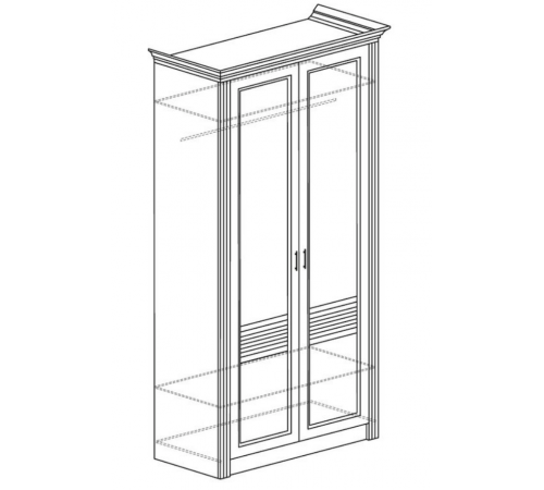 Купить двухдверный шкаф для одежды из серии Орлеан (1235х2283х563мм) в цвете ясень светлый. Глубокий и вместительный по своим габаритам шкаф наполнен двумя полками и большой штангой,что позволит использовать его для хранения одежды и вещей по максимуму. Патинированные дверцы, рефленая фрезеровка фасадов и ручки под состаренный металл придают особый шарм серии "Орлеан"