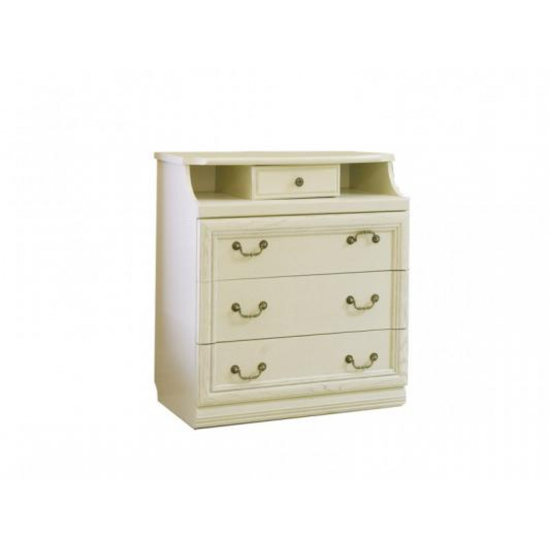 Оригинальный комод в классическом стиле из коллекции «Нинель» от белорусской фабрики «Молодечномебель» выполнен из натурального дуба. Три просторных ящика для белья и небольшой для украшений делают этот предмет мебели не только стильным, но и очень удобным.