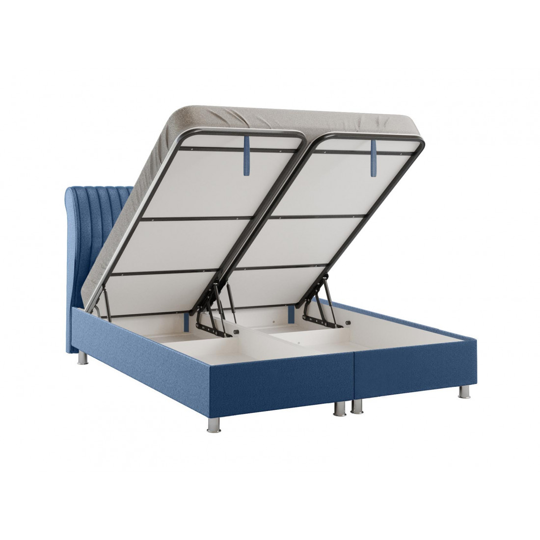 Элегантная база и спинка с декоративной отстрочкой с обивкой из мебельной ткани. Данная модель идет в комплекте с вкладным, жестким кроватным основанием, оснащенным двухсторонним газоподъемным механизмом с двухсторонним фиксатором. Подъемный механизм, которым оснащено основание кровати, добавляет комфорта в использовании модели, облегчая доступ к вместительному ящику для белья.