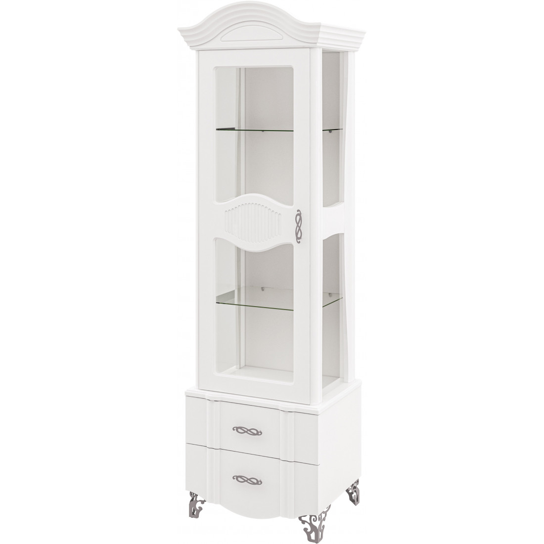 Дизайн гостиной поражает лаконичностью и изяществом. Эффектности ему придает и практические идентичное воспроизведение очертаний узора на гравировке на фигурных хромированных ручках и ножках, фрезеровке по карнизу шкафов-витрин. Купить гостиную София – добавить ощущение сдержанной роскоши в интерьерное решение гостиной.