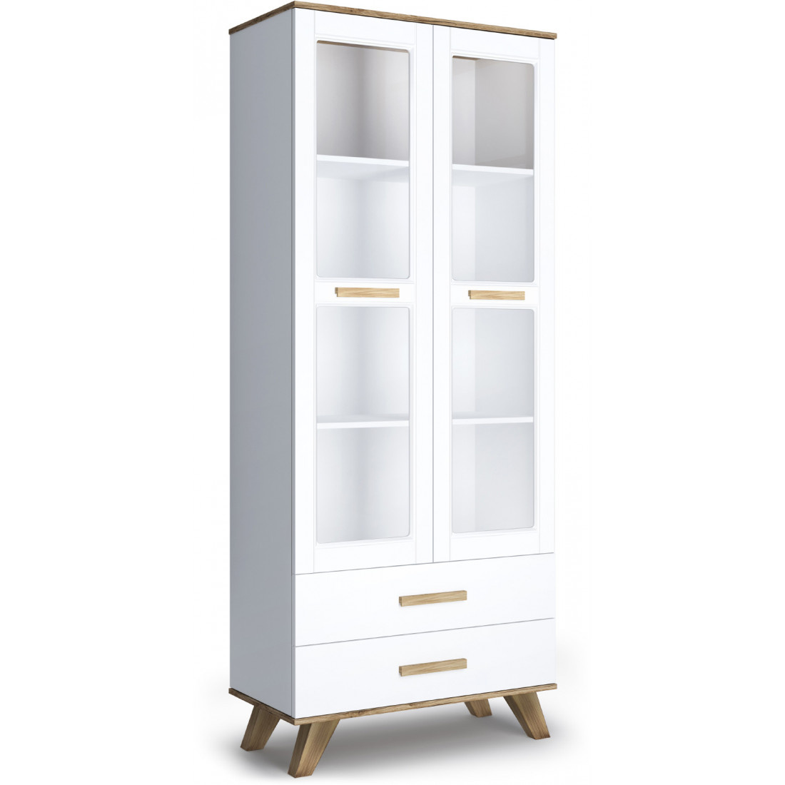Шкаф-витрина 800 Вега Скандинавия (глянец, белый + дуб каньон)