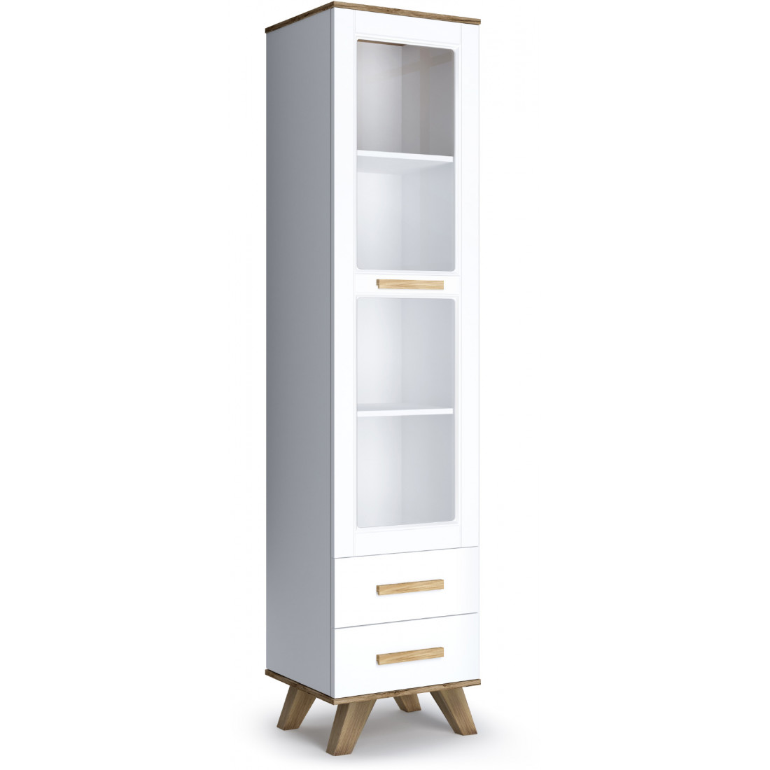 Шкаф-витрина 450 Вега Скандинавия (глянец, белый + дуб каньон)