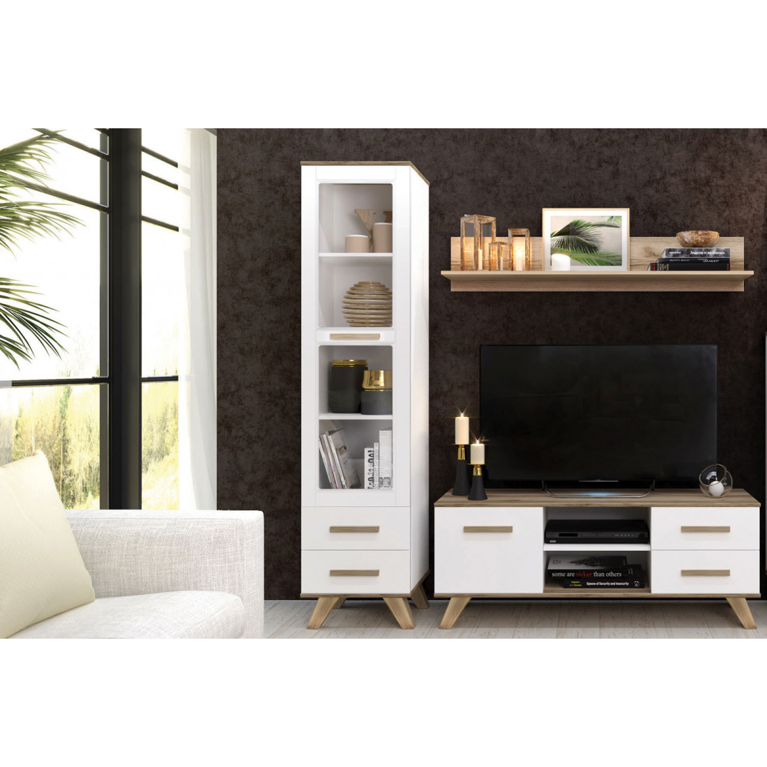 Тумба под ТВ Вега Скандинавия (глянец, белый + дуб каньон)