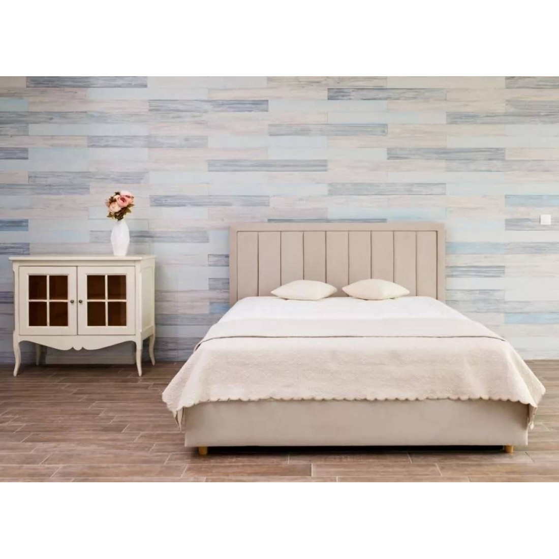 Кровать оснащена встроенным основанием для матраса — прямыми ламелями из березовой фанеры.