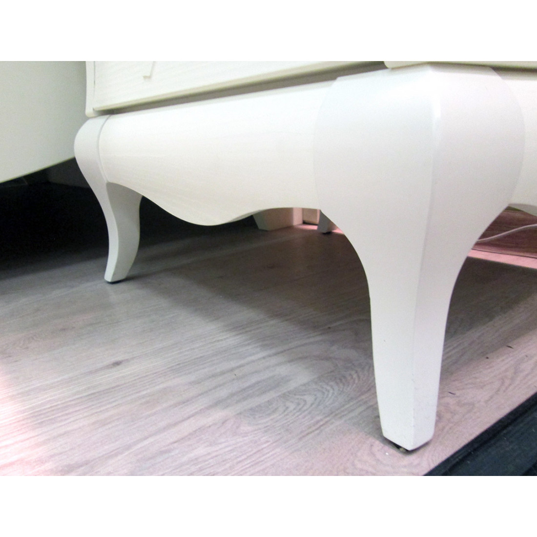 - Цвет фасада - «крем крашеное дерево» – криволинейные фасады МДФ-38мм, боковые стенки МДФ-28мм, крышка (сборная) МДФ-54мм Kronospan Szczecinek (Польша) + ПВХ Alfaterm (Италия).