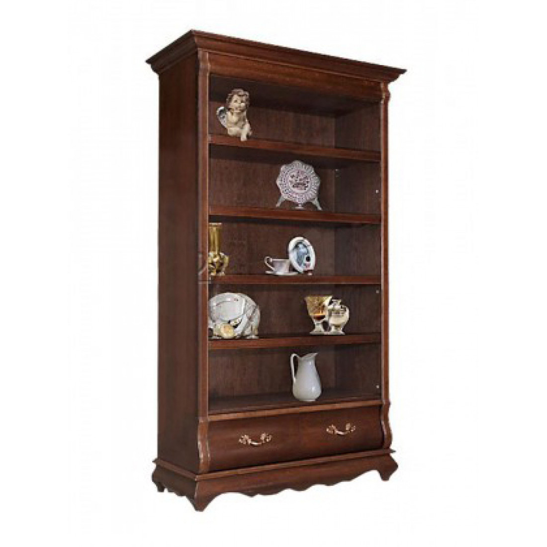 Шкаф с полками и выдвижными ящиками из коллекции "Оскар" - отличное решение для хранения вещей в гостиной или библиотеке. Открытые полки позволяют хранить книги, сувениры и необходимые вещи в прямой доступности. А оригинальная отделка фасада и цоколей делает эту модель изящной и элегантной. Выдвижные ящики оснащены направляющими полного выдвижения и бесшумного закрывания, дно выстлано тканью. Полки регулируются по высоте. Модель выполнена из массива дуба и поставляется в оттенках "Орех" и "Белая эмаль с патиной".