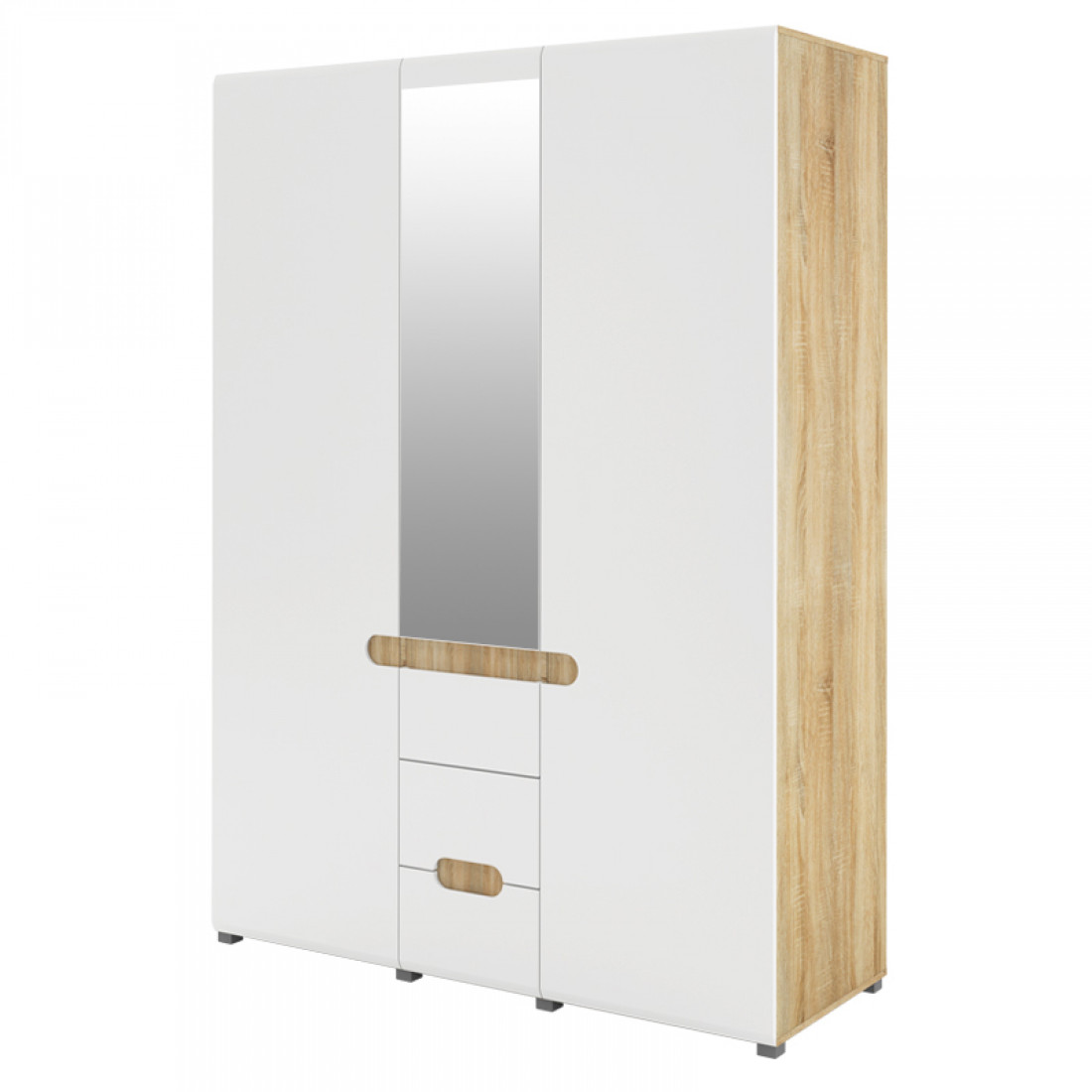 Трехстворчатый шкаф для одежды и белья с зеркалом в спальню Леонардо МН-026-08