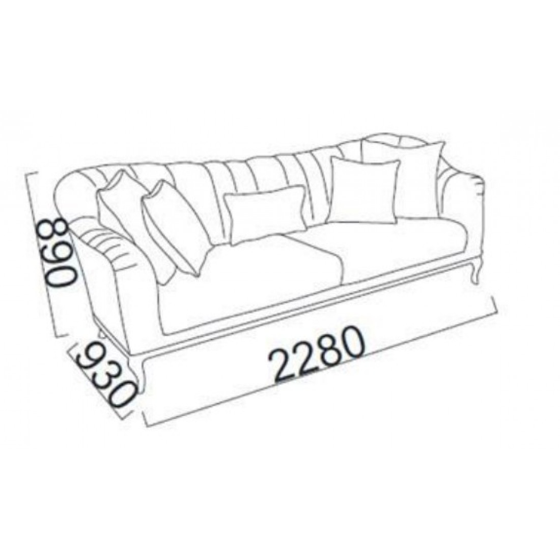 Идеальные вертикальные линии на спинке и подлокотниках выделяют трехместный диван из коллекции "Pesaro" среди конкурентов. Он представлен в нескольких цветовых вариантах: в синих, белых и фиолетовых тонах. В комплект входят пять разнообразных подушек, четыре из которых квадратные и одна маленькая прямоугольная. Высокие ножки, обрамлённые прекрасным декором с древесной текстурой, упростят уборку в доме. Ткань этого дивана невероятно мягкая и очень легко чистится