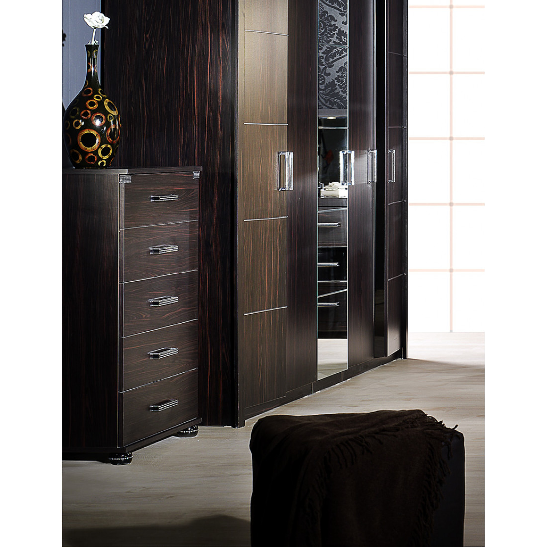 Узкий высокий бельевой комод MIRA-28 (венге) серии Мира от Беллона предлагается для обстановки интерьера спальни. Благодаря универсальной практичной конструкции и компактным размером он также способен добавить функциональности любому помещению в доме: прихожей, гостиной и библиотеке. Купить практичный комод стоит и за стильный современный дизайн: в оформлении ручек, ножек и фасадной части используются знаменитые стразы Swarovski.