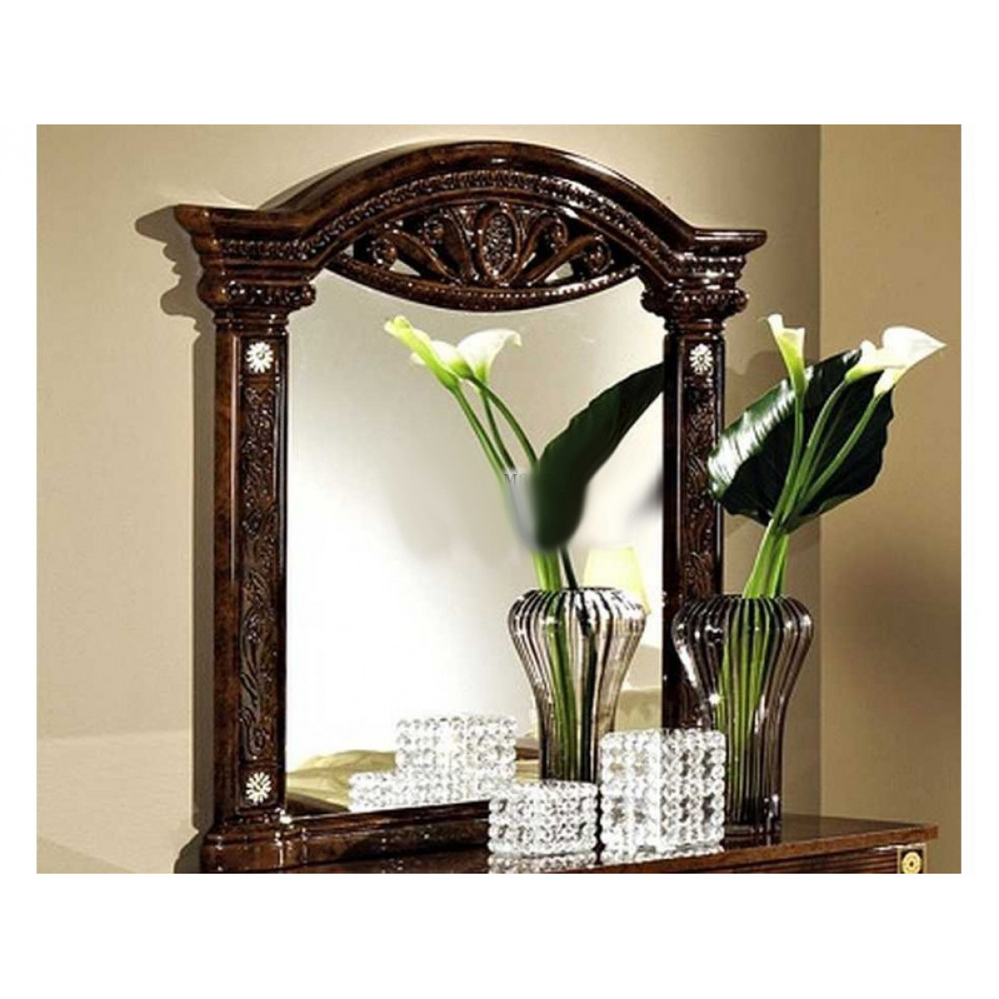 Зеркало для туалетного столика Рома (орех) от Российской фабрики «ДИА мебель», выполнено в элегантном цвете орех. Зеркало имеет красивую и нестандартную форму и будет отличным дополнением к туалетному столику любой ширины.